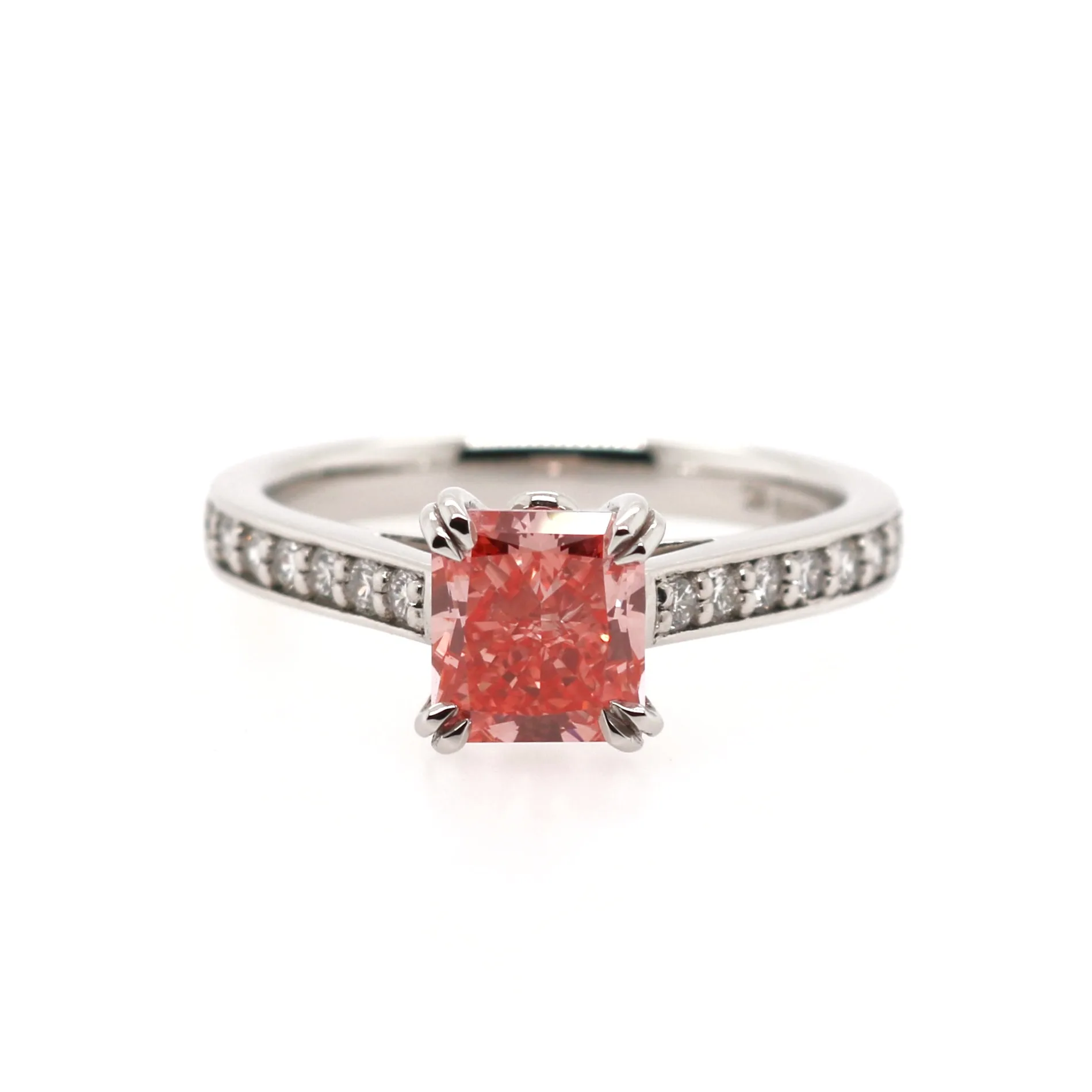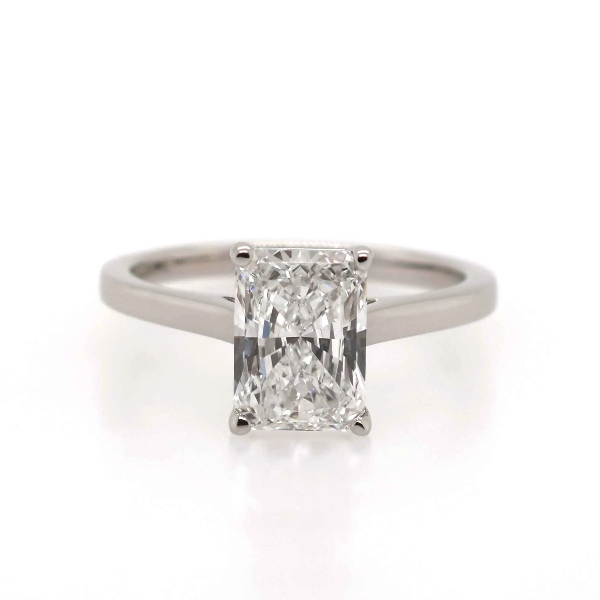 Centre stone: laboratory grown diamond, radiant cut